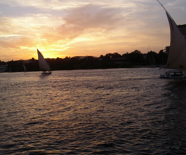 Ägypten, schreibt der griechische Historiker Herodot im 5. Jahrhundert v. Chr., ist sozusagen ein Geschenk des Nils, dem man ohne zu Zögern noch hinzufügen könnte "und seines Volkes". Die entscheidende Voraussetzung für die Entstehung Ägyptens war die geographische Lage am Nil. Der Nil entspringt in den Hochländern Ostafrikas und endet nach einer Strecke von ca. 6500 km im Mittelmeer. Der Fluss bestimmte im alten Ägypten den Lebensrhythmus des Volkes. Bevor im 20. Jahrhundert der Nil durch Dämme reguliert wurde, ließen die Monsunregen in Äthiopien den Fluss im Unterlauf anschwellen und von Juni bis Oktober war das Land mit fruchtbarem schwarzem Schlamm überschwemmt, auf dem eine üppige Vegetation gedeihen konnte. Heute werden die Wassers des Nils zwar durch den von 1960 bis 1971 errichteten Assuan-Staudamm reguliert, so dass es zu keinen unkontrollierten Überschwemmungen mehr kommt, aber der Nil ist auch heute noch die Lebensader Ägyptens. In den Wüstengebieten Oberägyptens bildet der Nil eine fünf bis 20 km breite Niederung, eine lebenswichtige Fluss-Oase, die landwirtschaftlich nutzbar ist. Unterhalb von Kairo fächert sich der Nil zum etwa 24.000 km² großem Nildelta auf, das seit alters her als Kornkammer und Gemüsegarten Ägyptens und seit dem letzten Jahrhundert als eine der größten Baumwollanbauflächen der Welt gilt. Nach dessen Durchfließen mündet der Nil, der längste Fluss der Welt, schließlich in das Mittelmeer.