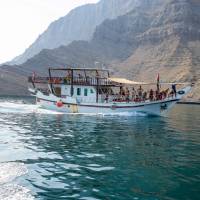 Mit einem mühelosen Start in den Tag treffen Sie Ihren englischsprachigen Fahrer in Ihrem Hotel und fahren zum Hafen. Reisen Sie stilvoll, während Sie auf einem traditionellen arabischen Dhow-Boot entlang des Persischen Golfs kreuzen. Musandam Dibba ist das perfekte Ziel für jeden Naturliebhaber mit seiner atemberaubenden Landschaft. Bewundern Sie die unglaublichen Hajar-Berge vom Meer aus, während Sie sich auf traditionellen Kissen entspannen. Nach dem Genuss der endlosen Aussichten springen Sie ins Wasser zum Schwimmen und Schnorcheln neben den kostbaren Meeresbewohnern.