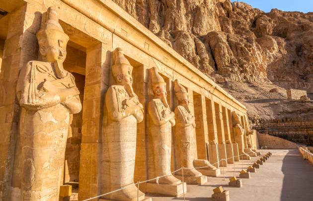Nach dem Frühstück beginnt Ihr Abenteuer zur Westbank von Luxor. Besuchen Sie drei der berühmtesten Gräber im Tal der Könige und den majestätischen Terrassentempel der Hatschepsut in Deir el-Bahari. Zum Abschluss erwarten Sie die imposanten Memnon-Statuen, die seit Jahrtausenden über Theben wachen. Rückkehr zur Dahabeya für ein entspanntes Abendessen und eine ruhige Übernachtung an Bord.