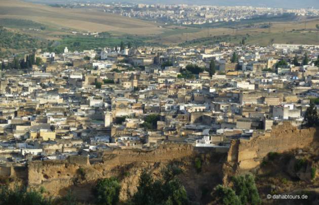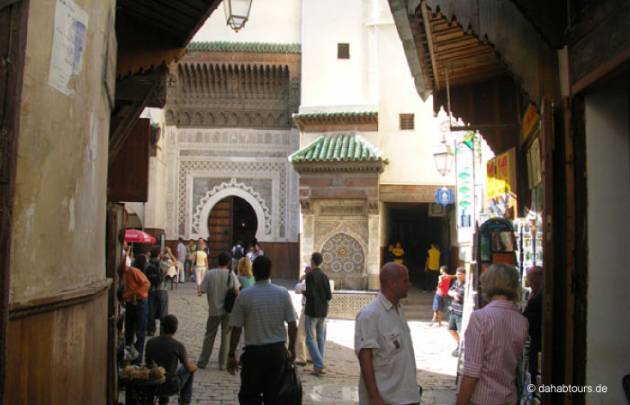 Verbringen Sie einen unvergesslichen Tag, um die älteste der vier Königsstädte ausführlich zu besichtigen. Flanieren Sie durch die faszinierende mittelalterliche Medina und lassen sich vom orientalischen Flair bezaubern. Die Stadt Fes ist das geistige und kulturelle Zentrums des Landes. Nicht fehlen darf bei einer Tour durch die blaue Stadt der farbenfrohe Souk sowie das Handwerker- und Gerberviertel. Noch heute wird hier in der alten orientalischen Tradition gearbeitet. Die Karaouiyine-Moschee ist eine der größten Marokkos. Die in ihr untergebrachte Universität gilt als die älteste der Welt. Sie wurde im 9. Jahrhundert gegründet, einer Zeit, in der das Fundamentalwissen aus Theologie, Grammatik und koranischem Recht bestand. Die Medersa El-Attarine ihr gegenüber gilt als die schönste der Medina. Sehr sehenswert ist auch die Medersa Bou Inania. Sie wurde zwischen 1350 und 1357 erbaut und ist die größte in Fes. Abendessen im Hotel und Übernachtung.