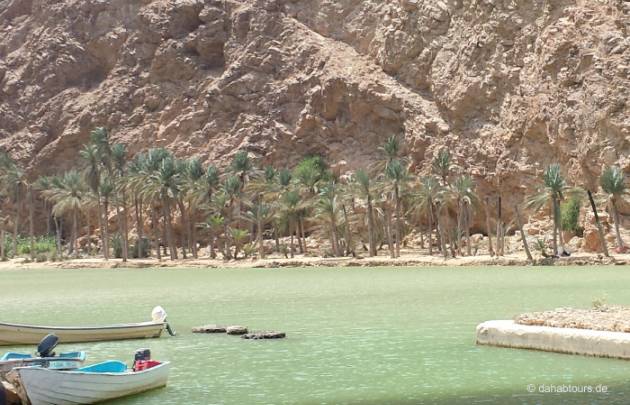Am Morgen verlassen wir das Hotel und fahren gen Sur. Dort besuchen wir ein Dhow Werft, wo auch heute noch die typischen omanischen Holzschiffe ohne Nägel und Leim auf alte traditionelle Art gebaut werden. Von hier aus folgen wir der Panoramastraße, welche bis hinunter an die Küste führt und Ihnen einen wunderschönen Ausblick auf das Meer und über die traumhaften weißen Sandstrände von Fins Beach bietet. Wir erreichen Wadi Shab einem der schönsten Trockenflusstäler des Landes. Wir werden mit einem Boot ans andere Ufer gebracht, um dort unsere Wanderung durch die Schlucht und die Dattelgärten fortzusetzen. Nach der Wanderung fahren wir zu dem Fischerdorf Fins, wo wir heute am Strand unter tausenden von Sternen übernachten werden.