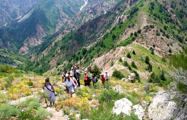 Nach dem Frühstück im Hotel geht die Tour ins Chimgan Gebirge, das im Nordosten des Lands liegt. Wir folgen dem Tschirchik Fluss entlang, der als wichtige Wasserquelle für die Region Taschkent gilt. Nach zweistündiger Fahrt durch grüne Landschaft wird unser Ziel erreicht und Sie beginnen Ihre Wanderung in der Region Chimgan. Der Weg geht über einen leicht ansteigenden Weg auf den Tachta Dschaylau Pass (1900 m ü. NN) und von hier aus zum Marmorfluss herunter (1500 m ü. NN), dabei können Sie zur Erleichterung Stöcke nutzen. Unter großen Wallnussbäumen stärken Sie sich durch ein Picknick und können die frische Bergluft genießen. Nach der Mittagspause steigen Sie auf den Kreidepass (1700 ü. NN) und können den Gipfel des Großen Chimgan (3309 ü. NN) sehen. Über den Tschetkumbelpass (1900 ü. NN) laufen Sie durch wunderschöne Wachholdersträucher zur großen Hauptstraße herunter. Nach dreistündiger Wanderung am Nachmittag erfolgt der Transfer zu Ihrem Quartier. Abendessen und Übernachtung im Hotel in Taschkent.