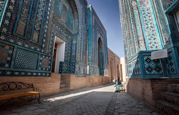 Frühstück im Hotel. Besichtigung des Komplexes des Shahi-Sinda. Viele prachtvolle Grabmäler, unter anderem auch der Vetter des Propheten, aus der Zeit 11-15 Jh. bilden die „Pforte des Himmels“. Besichtigung der Stätte Afrosiab, das Marakanda der Griechen. Im Jahre 1220 von den Horden Dshingis-Khans zerstört. Besichtigung des kleinen Museums mit den Resten der Wandmalereien „Meisterwerke der sogdischen Kunst“. Wir besuchen noch das Grab Daniels – Prophet dreier Religionen: Judentum, Christentum und Islam. Es ist sicher nicht das imposanteste, aber vielleicht das interessanteste Mausoleum von Samarkand überhaupt. Den Abschluss des heutigen Programms bildet die Sternwarte des Ulugh Begh. Das Abendessen im Innenhof einer Karavanserei bleibt unvergesslich: leckere Salate, usbekische Spezialitäten. Übernachtung in Samarkand.